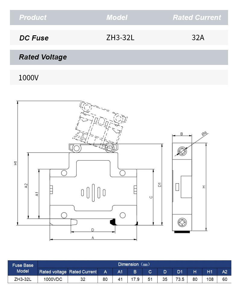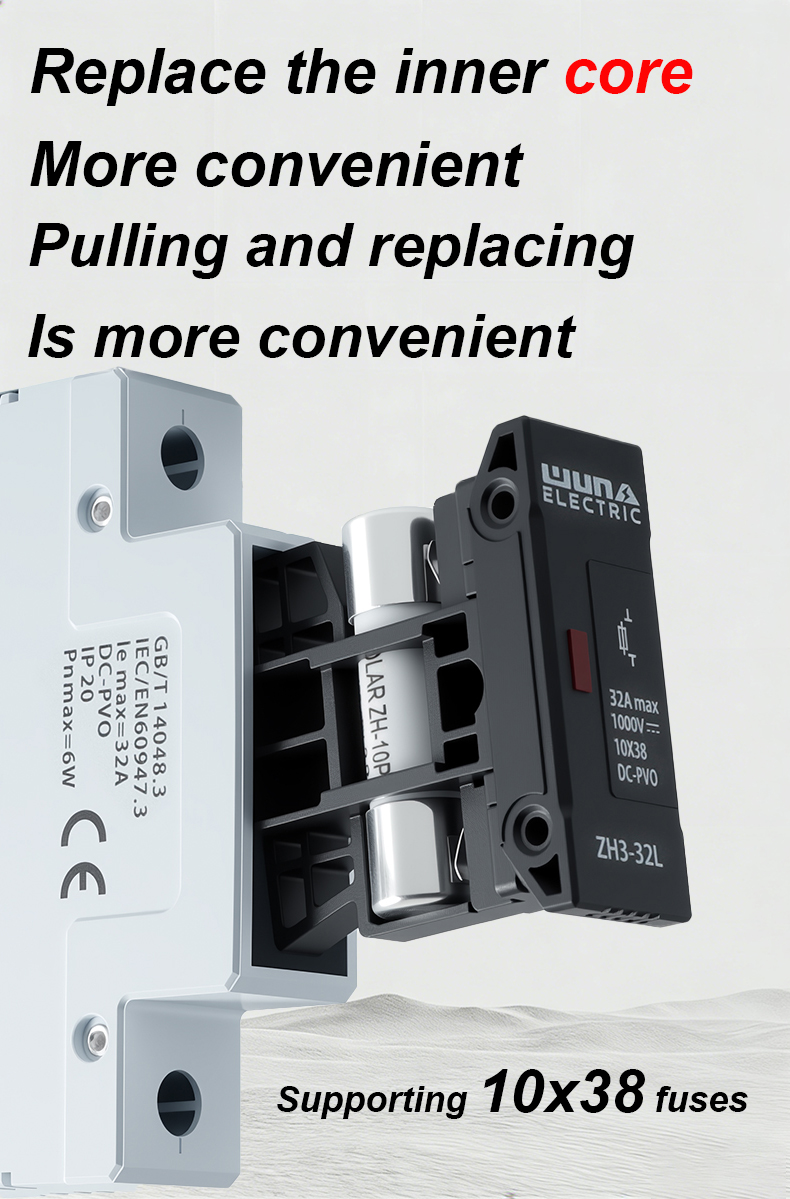 ZH32L DC 1000V Fuse Holder est summus perficientur componentis ordinatur ad tutelam firmam tutelam pro electricis circuitibus in photovoltaicis aliisque DC applicationibus curare. Aliquam robustam constructionem et insulationem superiorem, ZH32L DC 1000V Fuse Holder apta est ad fuses habitationum tuto usque ad 1000V DC aestimatas, efficaciter praeveniens supercurrentes et breves ambitus damnum.